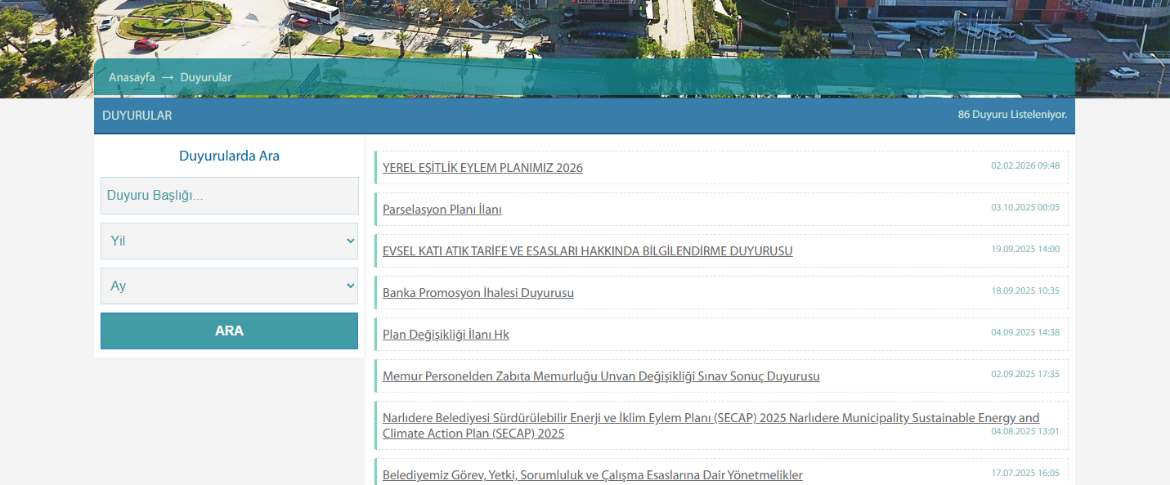 Narlıdere Belediyesi için geliştirilen bu proje, kurumun dijital iletişimini güçlendirmek ve vatandaşlara hızlı, erişilebilir ve kullanıcı dostu bir web deneyimi sunmak amacıyla hayata geçirilmiştir.